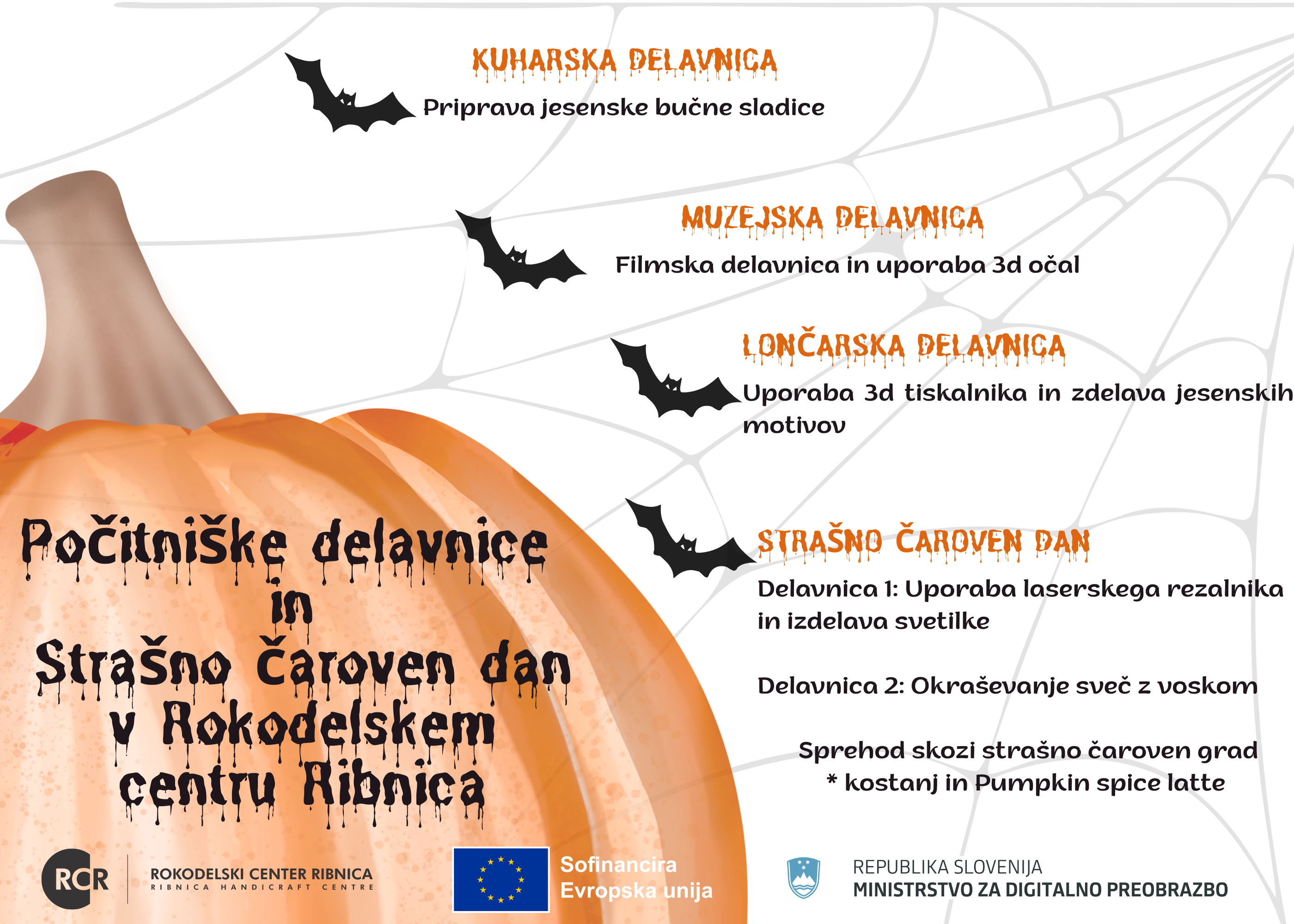 30. oktobra 2025 smo v Rokodelskem centru Ribnica doživeli strašno čaroben dan, poln ustvarjalnosti, jesenskega vzdušja in sladkih dobrot. V čarobno pripravljenem ambientu smo za otroke pripravili dve ustvarjalni delavnici – poslikavo sveč z voskom in izdelavo lesenih svetilk. Ob ustvarjanju