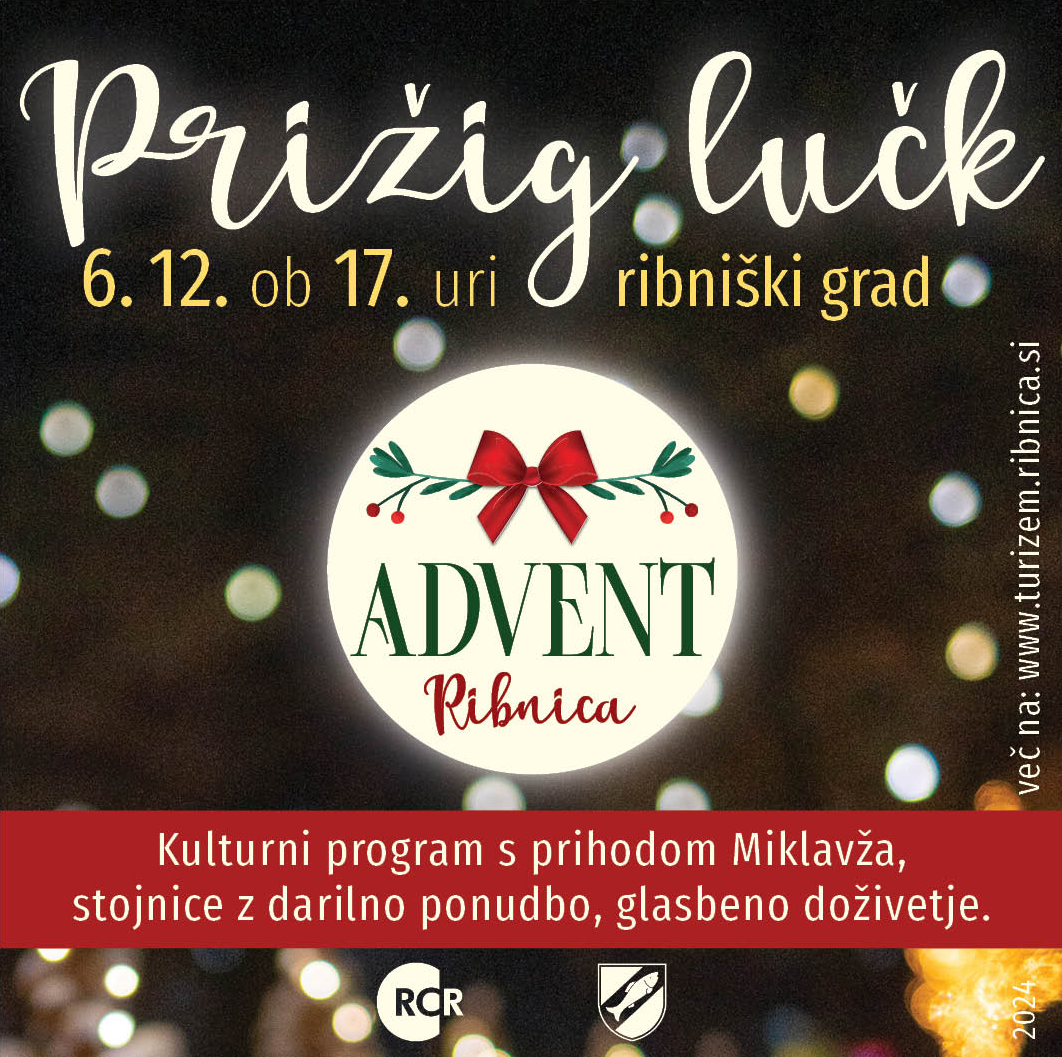 Adventni čas v Ribnici bo poln veselja, kulture in ustvarjalnosti za vse generacije. Od 6.12.ko bomo prižgali praznične luči, pa vse do silvestrovanja, se bodo v Ribnici zvrstili številni koncerti, gledališke predstave, kulturni programi in otroške delavnice. Za najmlajše bo